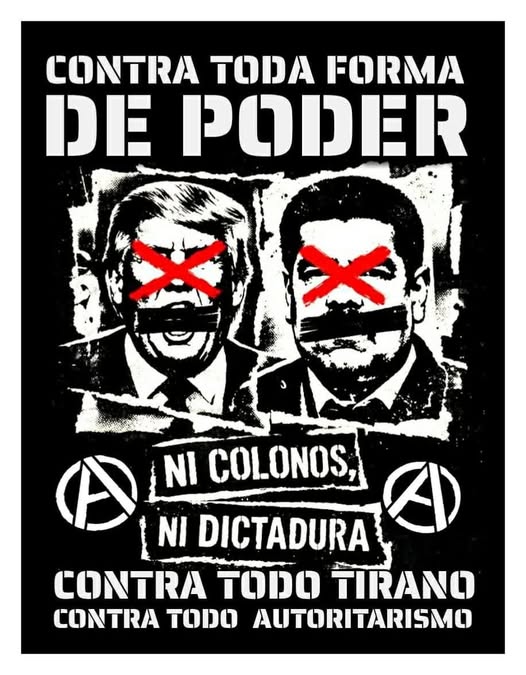 Los recursos naturales han de ser repartidos a cada quien según sus necesidades por y para el pueblo, y ningún empresario devenido presidente está legitimado para saquear territorios ni perpetuar la dictadura chavista. No debemos permitir el neocolonialismo ni los autoritarismos de los siglos XIX y XX que pisotea desde el terrorismo de Estado las vidas, flora, fauna e infraestructuras para el lucro únicamente de empresas de otros territorios, ni tampoco para el lucro de Trump, ni ninguna otra forma de capitalismo.