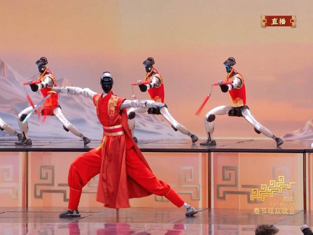 Exhibición de artes marciales (kung fu) protagonizada por robots humanoides en la Gala de la Fiesta de la Primavera de CCTV 2026. Foto via China Focus