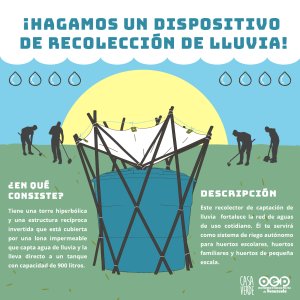 En esta segunda fase del proyecto Casa Verde del Observatorio de Ecología Política hemos puesto a tu disposición cómo hacer un recolector de agua de lluvia par a huertos de pequeña y mediana escala, conoce los materiales y cómo realizarlo en esta infografía.