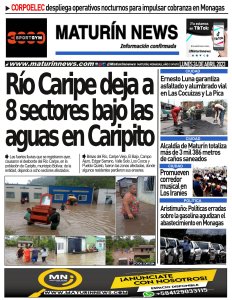 Figura 30: Inundaciones en el Río Caripito en Monagas. Fuente: Portada del diario Maturín New 23 de abril de 2023