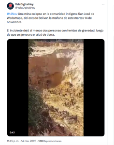 Figura 23. Derrumbe de una mina en San Jose de Wadamapa. Fuente runrunes (2023)
